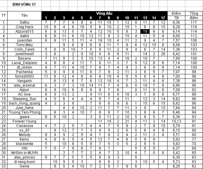 Topic: BXH vòng 17 (Read 6830 times)