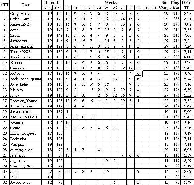 Topic: BẢNG TỔNG HỢP XẾP HẠNG SAU VÒNG 29 (Read 6832 times)