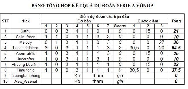 Topic: BẢNG XẾP HẠNG SAU VÒNG 5 (Read 8646 times)
