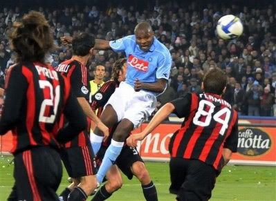 Bên kia phần sân, cho dù không thực sự nổi bật nhưng Napoli cũng tạo được khá nhiều cơ hội ngon ăn nhờ vào sự chậm chạp của hậu vệ đối phương. Phút 36, pha phối hợp với Pazienza đã tạo điều kiện để Lavezzi tung cú sút như búa bổ song thủ thành Dida kịp cảnh giác và đổ người cản phá chính xác.