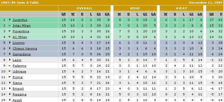 Chiến thắng cùng 3 điểm quý giá đã giúp Inter leo lên thứ 2 trên BXH, đẩy đối thủ của mình xuống vị trí thứ 4 và gần như chắc chắn khiến AC Milan phải nói lời chia tay với Scudetto 05/06 cho dù lễ Giánh sinh vẫn còn trước mắt. Đây rõ ràng là một tin vui không chỉ với các CĐV của Nerazzurri mà tại Turin, chắc hẳn cũng đã có người mở sâm-panh ăn mừng bởi khoảng cách giữa Juventus và đội xếp nhì tiếp tục được nới rộng lên con số 10. Một khoảng cách gần như không thể san lấp với cả thầy trò Roberto Mancini.