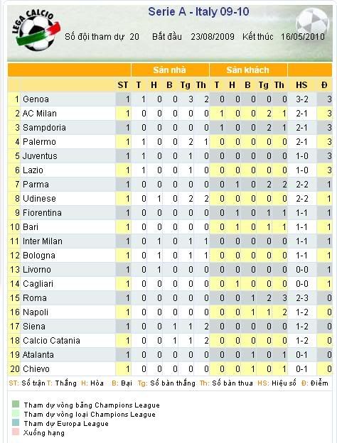 Mở màn Seria A mùa giải 2009/2010: cuộc đua tam mã.Vậy là một mùa giải Serie A mới sắp được khởi tranh, toàn thể tifosi đang hướng đến một mùa giải mới với những hi vọng, người ta đang hi vọng vào một cuộc lật đổ giành cho Juventus, Milan hay một CLB nào khác trước Inter Milan. Serie A gần đây đang đánh mất sự hấp dẫn khi có quá nhiều điều đáng bàn ngoài sân cỏ, là bạo lực, là vẫn nạn trọng tài. Vì vậy, chúng ta, người hâm mộ thứ bóng đá mà fan Premier League vẫn gọi là xấu đó, hi vọng có nhiều đổi thay trong mùa giải mới.