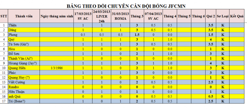 - Chương trình cầu thủ chuyên cần đã lên sàn. Trong tháng 3 Dũng có chấm điểm hơi nương tay, anh em cố gắng chuyên cần nhé.