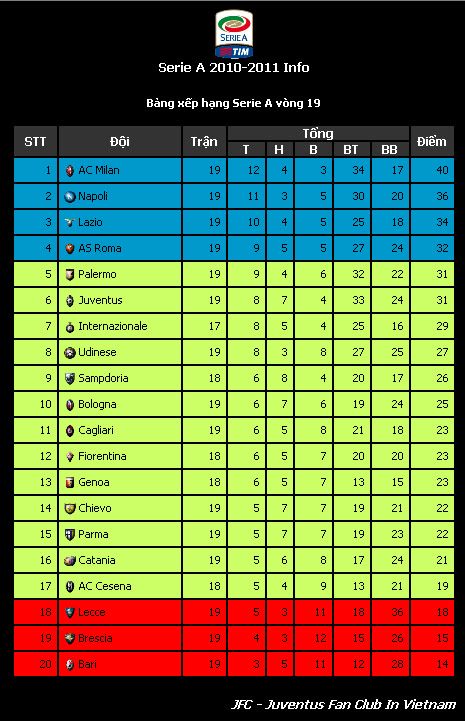 Sau vòn này thì Juve có một lịch thi đấu khá dễ chịu.Chỉ có Palermo và Samp là khá khó chịu,còn Bari,Catnia,Udinese,Cgliari là những đối thủ không khó để kiếm trọn 3 điểm.Hi vọng thầy trò DN sẽ tích lũy được số điểm quan trọng này trước khi bước vào trận đáu với Inter