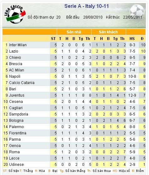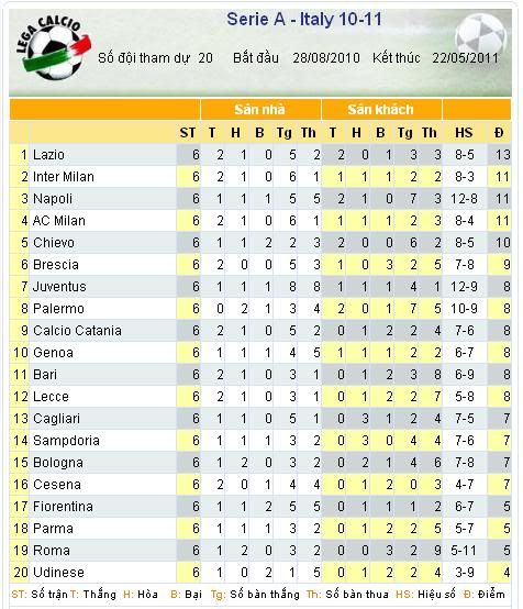 Sau sáu vòng đấu, Lazio đang ngự trên đỉnh bảng xếp hạng, trong khi Serie A không tìm ra cặp tiền vệ nào có được sự ăn ý và ảnh hưởng mạnh mẽ như Mauri - Hernanes. Cuối tuần này, thử thách cho Lazio của Reja là Bari với “pháo đài” kiên cố San Nicola (Bari thắng bốn, hòa một trong năm trận sân nhà gần nhất). Khó khăn là điều hiển nhiên, nhưng với tinh thần và phong độ đang lên rất cao, các tifosi Lazio hoàn toàn có lý do để chờ đợi khúc ca khải hoàn của đội nhà.
