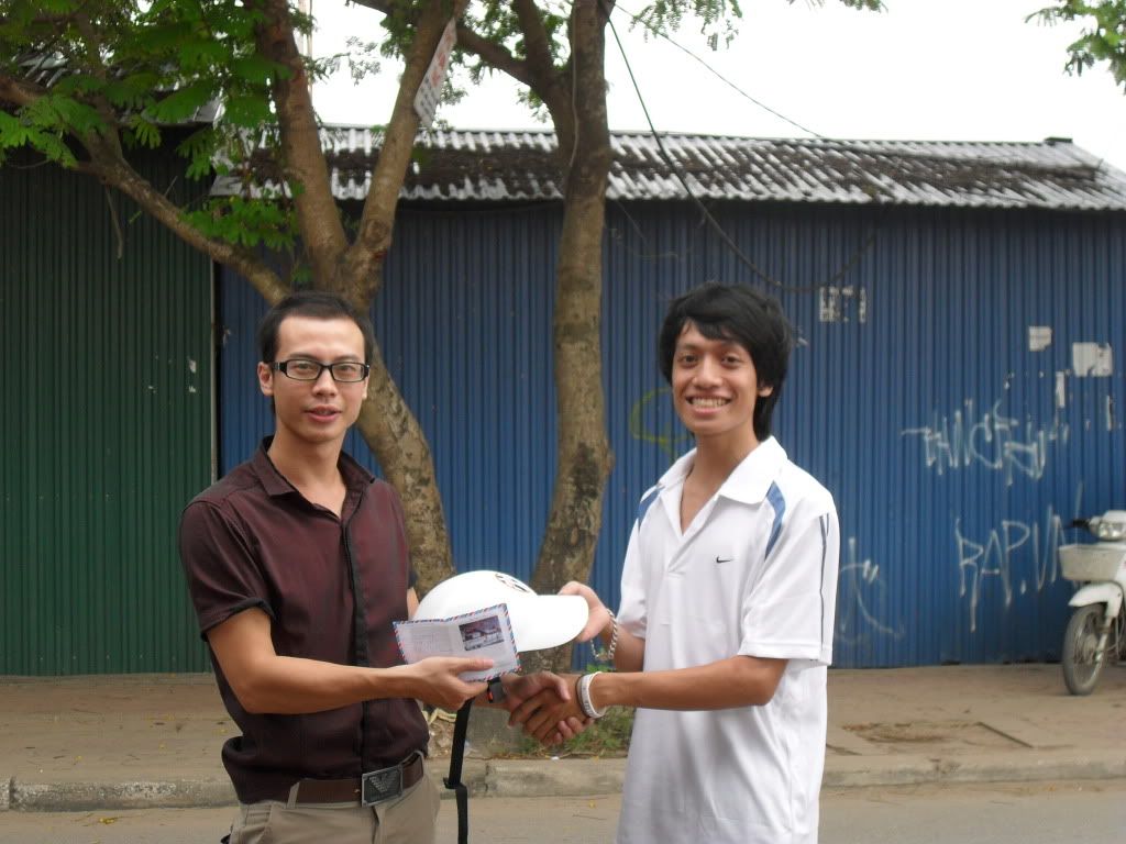Giải Nhất được anh Juverofan trao cho Phương ( người mặc áo xanh bên tay phải )