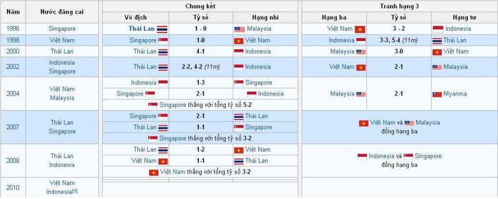 Cần gì tự làm khổ mình vậy anh.Mún chứng minh đẳng cấp thì phải vào bán kết và đụng với Thái Lan,giành chiến thắng 1 cách cực nhọc để vô chung kết gặp Singapore.Cuối cùng VN thắng trong loạt penalty,bảo vệ thành công ngôi vô địch AFF Cup