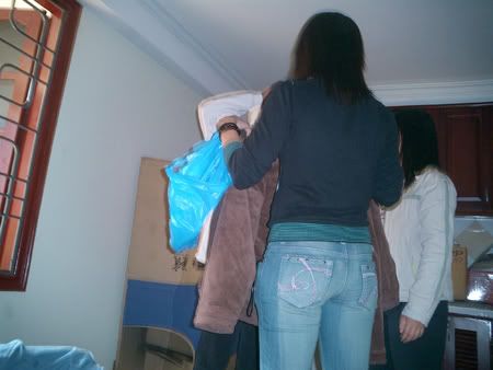 Một chiếc áo rét thật ấm áp. Chị Dido quyết định che cho anh Vũ thay ngay tại chỗ ^^